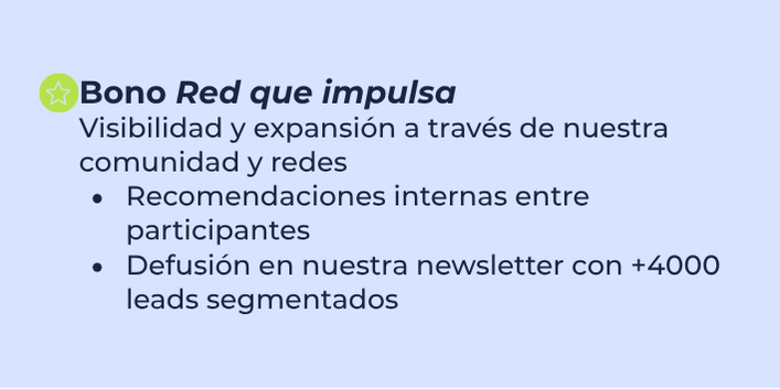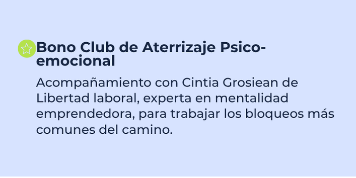 Además, vas a renovar el soporte y acompañamiento personalizado para que te guiemos paso a paso: 3 meses de trabajo en red y con nosotras.