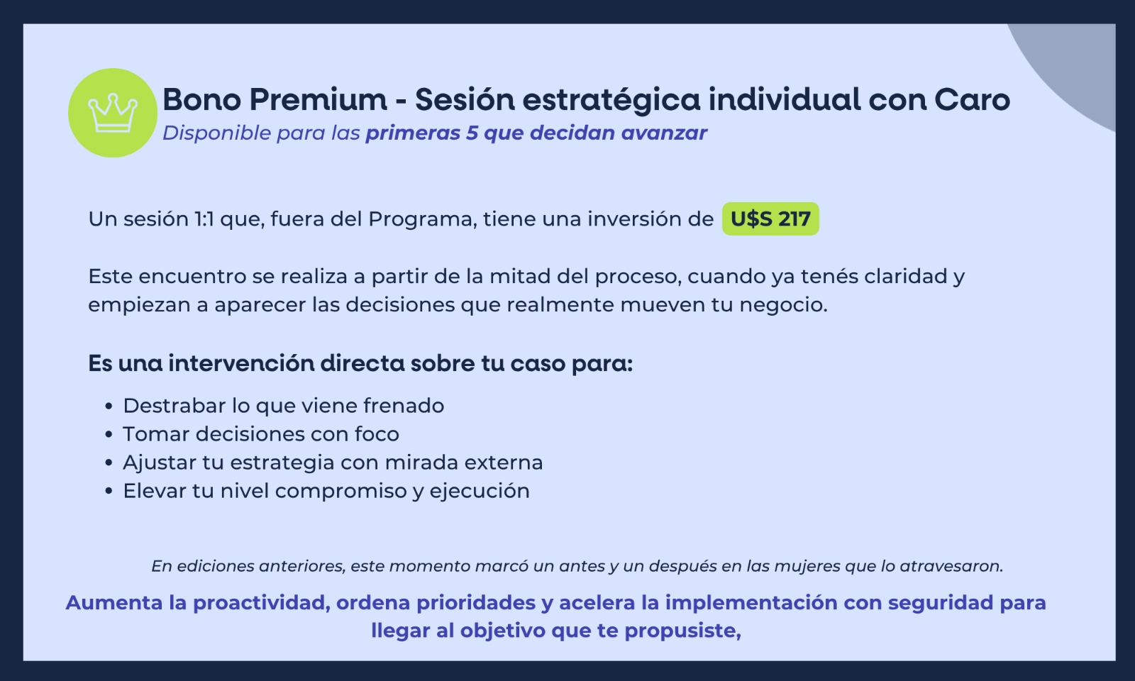 Lo más valioso de este Programa es que no solo aprendés herramientas: te cambia la forma de mirar tu negocio. A mí me dio una claridad que no tenía, como si de repente todo encajara. Te ordena la cabeza, te baja a tierra y te muestra que no hace falta hacer mil cosas, sino hacer lo justo y necesario, pero bien.