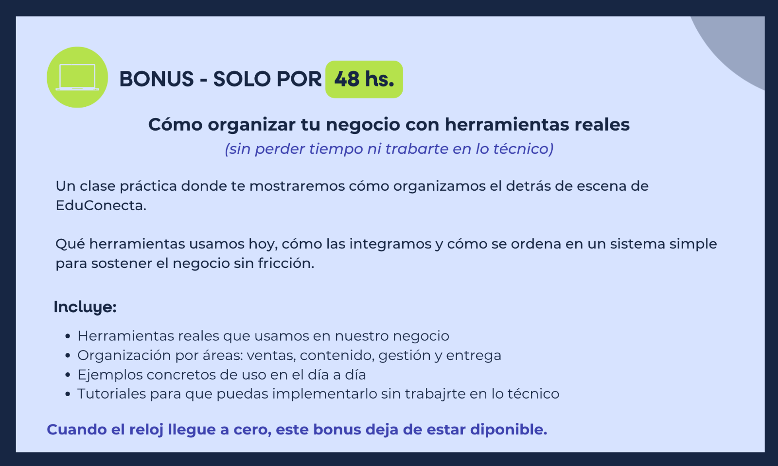 Si querés pasar de tener ideas sueltas a construir un negocio educativo con dirección, te contamos cómo hacerlo aplicando el Método Edu Conecta.